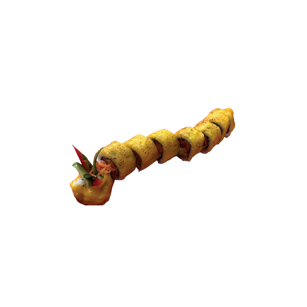 Riz vinaigré, feuille d’algue, avocat, concombres, poivron rouge, cheddars, sauce sweet chili mayo et car